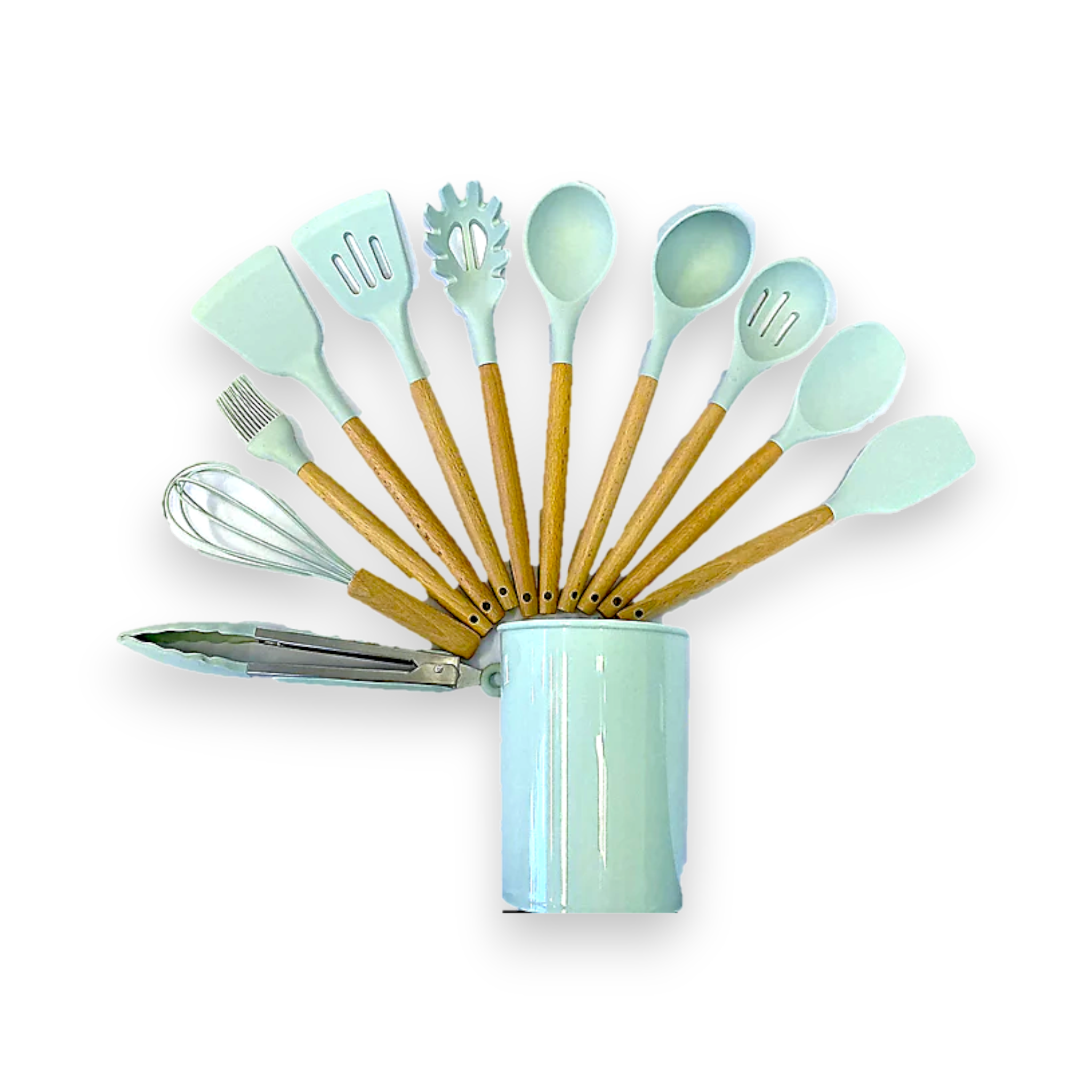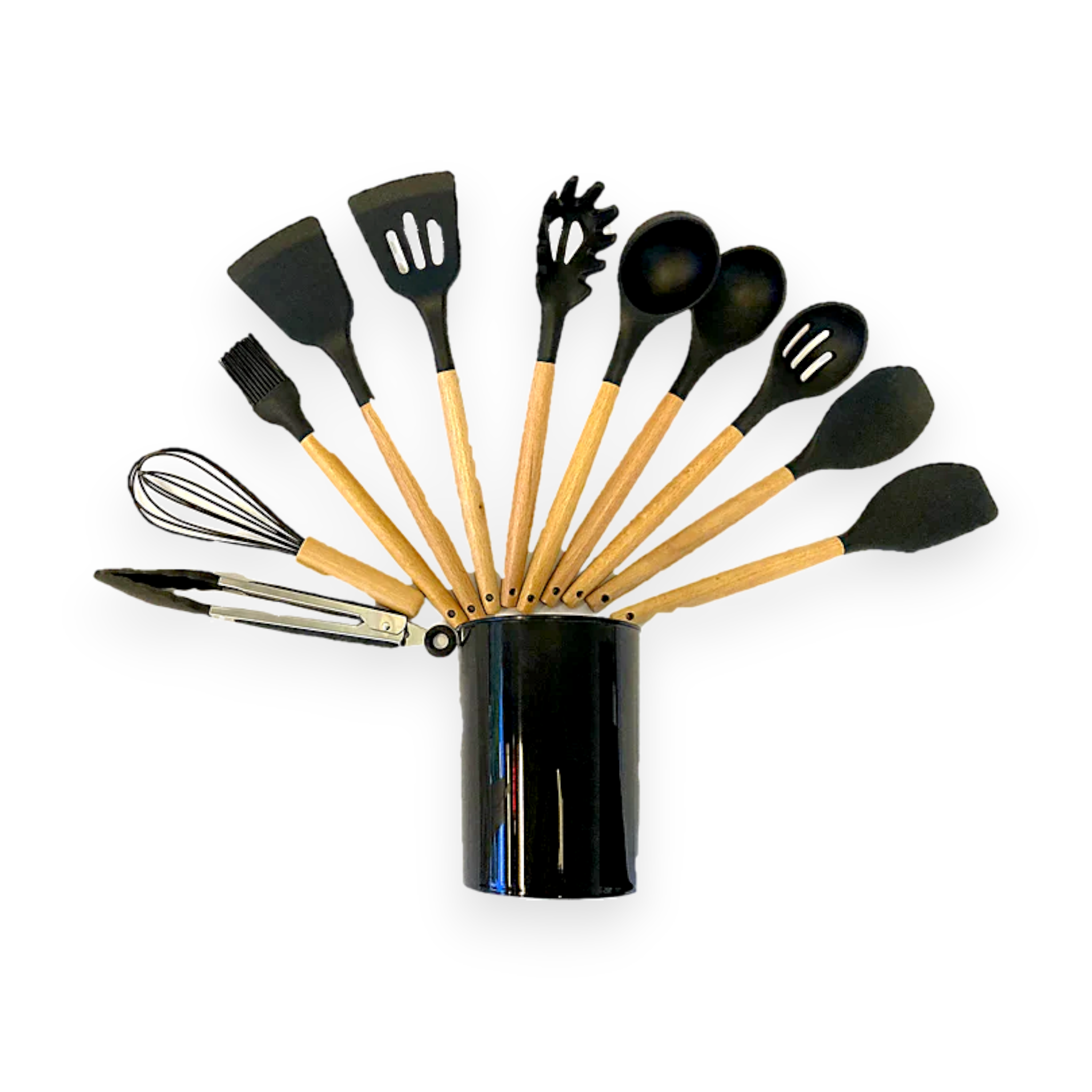 Neware Silicone & Wood 12-Piece Kitchen Utensil Set with Holder | #1812