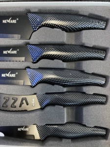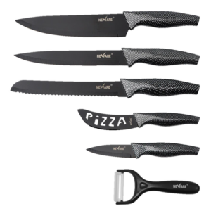 Neware’s Black Diamond Cut Knife Set delivers professional-grade performance in a premium gift-ready package. The 6-piece set includes an 8″ Chef Knife, 8″ Slicer, 8″ Bread Knife, 4.5″ Pizza Knife, 3.5″ Paring Knife, and Ceramic Peeler
