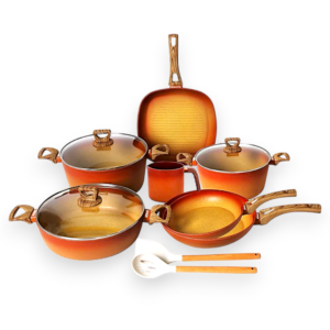 Non-Stick TerraCotta 12-Piece Cookware Set with Milk Cup | #7012-Terracotta