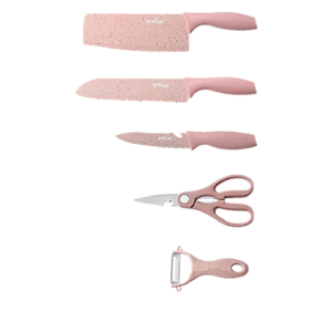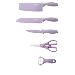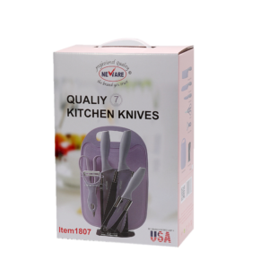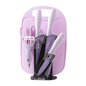 Be the first to review “Stainless Steel 7 piece knife set with storage cutting board (pink/purple)-1807” Cancel reply